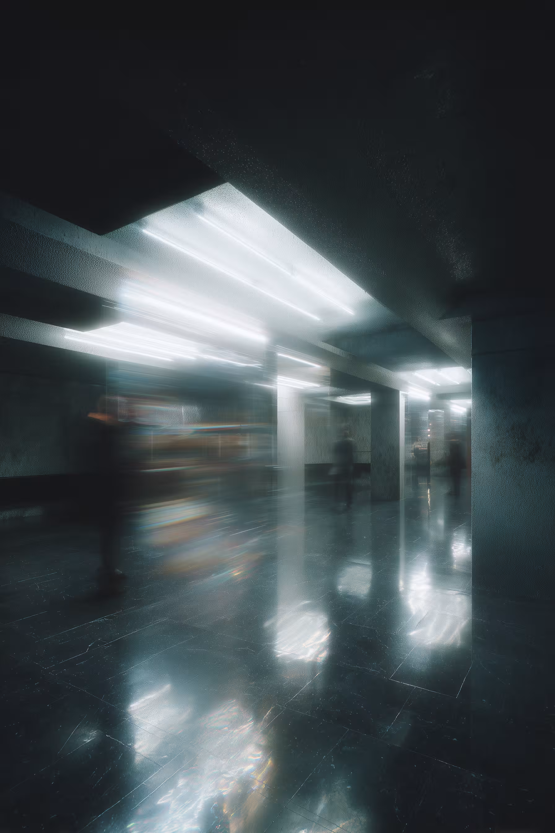 AI-generated imagery used as a medium for studying composition, balance and visual tension through repeated experimentation.